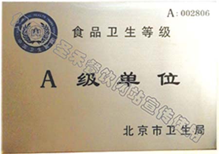 北京市卫生局评定食品卫生等级A级单位